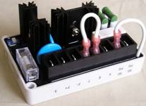 DVR2000E自動電壓調(diào)節(jié)器是電子式固態(tài)微處理器為基礎(chǔ)的控制器件。通過調(diào)節(jié)進(jìn)入勵磁機(jī)磁場的電流來控制交流無刷發(fā)電機(jī)的輸出電壓。與絕大部分調(diào)壓器不同,調(diào)壓器的輸入電流是從與主發(fā)電機(jī)相配的永磁高頻發(fā)電機(jī)(PMG)發(fā)電供給。