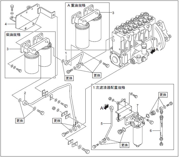 三菱S6R發(fā)動(dòng)機(jī)燃油濾清器、燃油管的拆卸,檢測(cè)
