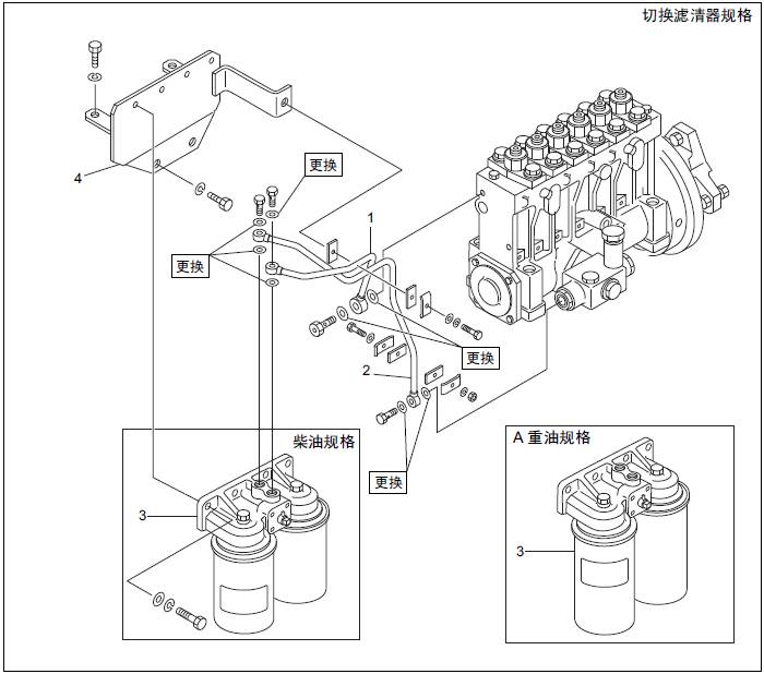 1.2 三菱S6R發(fā)動(dòng)機(jī)燃油濾清器、燃油管的拆卸,檢測(cè)