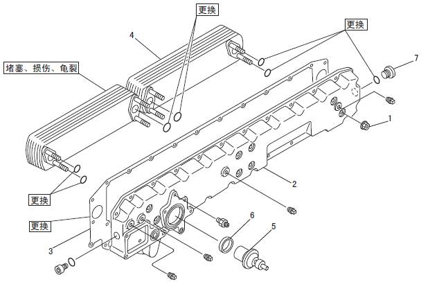 2.7 三菱S6R發(fā)動機潤滑油冷卻器、潤滑油恒溫器的解體
