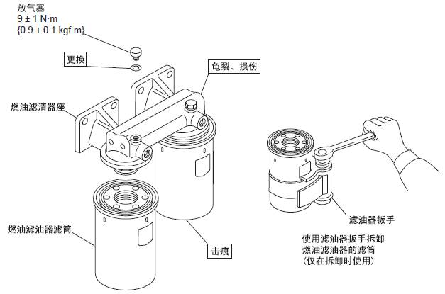 燃油濾清器的解體,檢修,組裝( 紙質(zhì)濾芯)