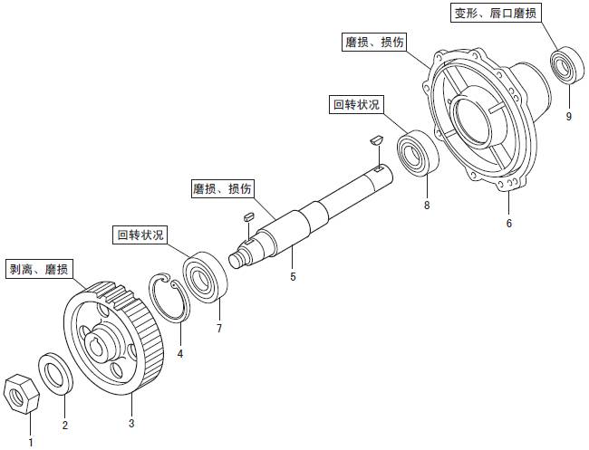 (2) 檢測(cè)驅(qū)動(dòng)軸和軸承的安裝部位,嚴(yán)重磨損時(shí)更換新品。
