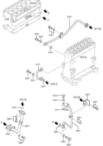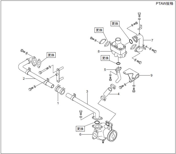 2 三菱S6R發(fā)動(dòng)機(jī)冷卻水管
