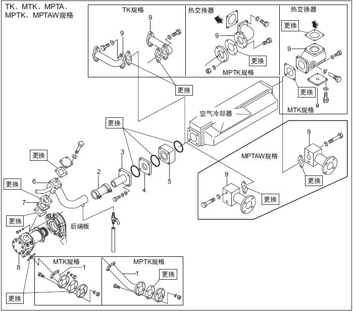 三菱S6R發(fā)動(dòng)機(jī)空氣冷卻器用水泵、三菱S6R發(fā)動(dòng)機(jī)恒溫器、水管的拆卸,檢修