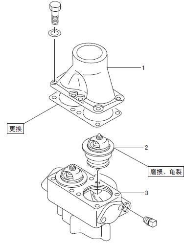1 三菱S6R發(fā)動機(jī)恒溫器端蓋 2 三菱S6R發(fā)動機(jī)恒溫器 3 三菱S6R發(fā)動機(jī)恒溫器密封