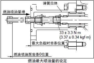 (1) 燃油噴油泵齒條前端(前側)的齒條設定端帽拆卸的狀態(tài),施加額定(最大)負載。