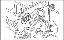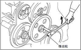 (2) 將正時(shí)齒輪箱向外拉至脫出定位銷(xiāo),然后拆下。