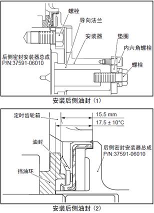 (4) 旋緊導向法蘭上的螺栓,將油封插入正時齒輪箱內(nèi)。
