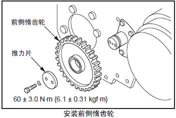 測(cè)量前側(cè)惰齒輪的軸向間隙。超過(guò)極限值時(shí),更換新的三菱S12柴油發(fā)動(dòng)機(jī)推力片或惰齒輪。