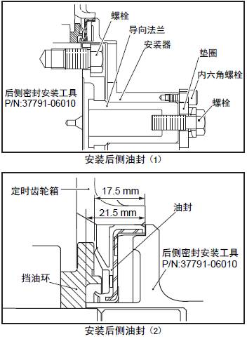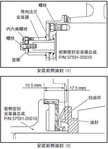 (4) 旋緊導(dǎo)向法蘭上的螺栓,將三菱S12柴油發(fā)動(dòng)機(jī)油封裝入前端蓋。