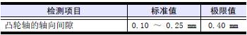 測(cè)量三菱S12柴油發(fā)動(dòng)機(jī)凸輪軸的軸向間隙。超過(guò)極限值時(shí),確定故障部件后更換。