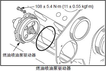 (1) 在三菱S12柴油發(fā)動(dòng)機(jī)燃油噴油泵驅(qū)動(dòng)器殼體的安裝面上裝上O形圈。在法蘭面上涂抹一薄層密封劑(ThreeBond 1212)。