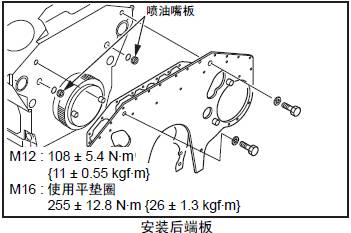(2) 在三菱S12柴油發(fā)動(dòng)機(jī)缸體的后端板墊片安裝面上涂抹密封劑(ThreeBond 1211),貼上墊片。