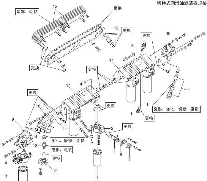 潤滑油濾清器、潤滑油濾清器報(bào)警器、釋放閥、左側(cè)潤滑油冷卻器的解體、檢修