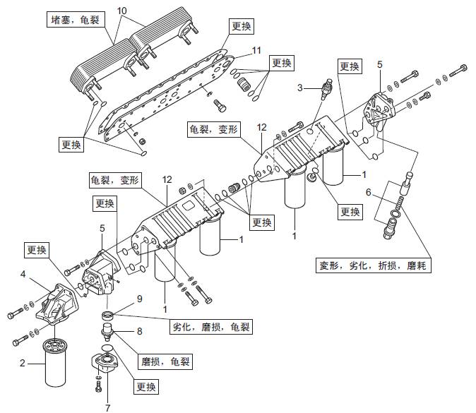 (2) 濾清器報(bào)警器的亮燈開始壓力超出標(biāo)準(zhǔn)值時(shí),更換新品。