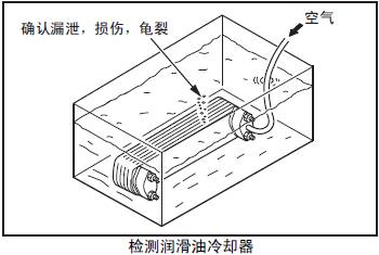 在冷卻器芯的潤滑油通道部位,進(jìn)行1.5MPa{15 kgf/cm2} 的壓縮空氣測試,檢查芯部的損傷或龜裂。發(fā)現(xiàn)有漏泄時(shí),更換新的冷卻器芯。