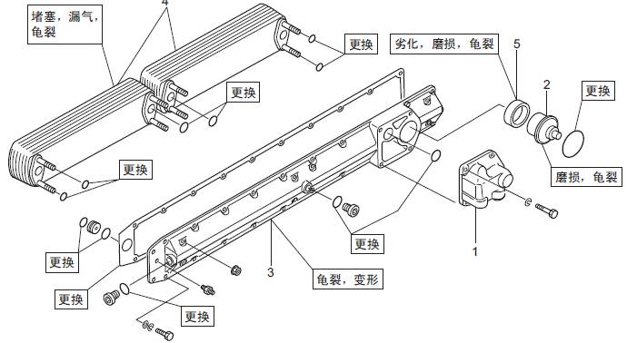 (1) 檢查潤滑油恒溫器的密封,發(fā)現(xiàn)老化或龜裂時(shí)更換新品。