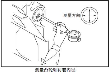 注: 測(cè)量?jī)?nèi)徑時(shí),注意不要損傷三菱R16柴油發(fā)動(dòng)機(jī)凸輪軸襯套的內(nèi)面。