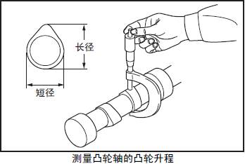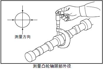 測(cè)量三菱R16柴油發(fā)動(dòng)機(jī)凸輪軸頸部正交兩個(gè)方向的外徑。超過(guò)極限值時(shí)更換新的三菱R16柴油發(fā)動(dòng)機(jī)凸輪軸。