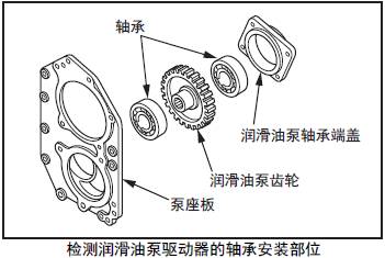 檢測(cè)三菱R16柴油發(fā)動(dòng)機(jī)機(jī)油泵齒輪的軸承安裝部位,嚴(yán)重磨損時(shí)更換新品。