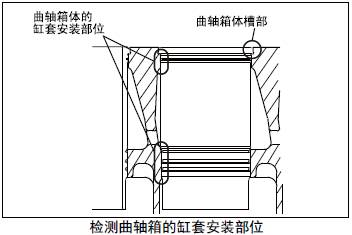 (2) 檢查三菱R16柴油發(fā)動(dòng)機(jī)三菱R16柴油發(fā)動(dòng)機(jī)缸體的三菱R16柴油發(fā)動(dòng)機(jī)缸套安裝部位,確認(rèn)無(wú)壓損、腐蝕等異常。