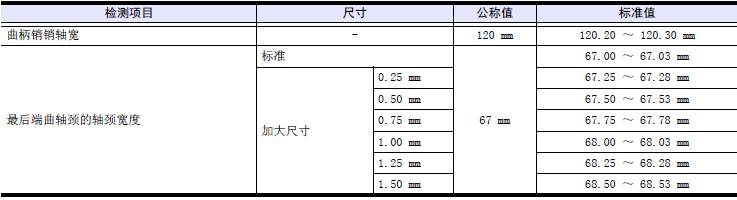 (2) 測(cè)量曲柄銷和最后端三菱R16柴油發(fā)動(dòng)機(jī)曲軸頸的軸頸寬度。根據(jù)最后端三菱R16柴油發(fā)動(dòng)機(jī)曲軸頸的軸頸寬度的磨損程度使用加大尺寸三菱R16柴油發(fā)動(dòng)機(jī)推力片時(shí),按照加大尺寸三菱R16柴油發(fā)動(dòng)機(jī)推力片的規(guī)格研磨三菱R16柴油發(fā)動(dòng)機(jī)曲軸。