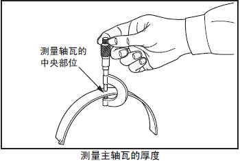 超過(guò)極限值時(shí),將主軸瓦上下整套更換。根據(jù)三菱R16柴油發(fā)動(dòng)機(jī)曲軸頸的磨損程度,在三菱R16柴油發(fā)動(dòng)機(jī)曲軸重新研磨使用時(shí),使用加厚尺寸的主軸瓦。