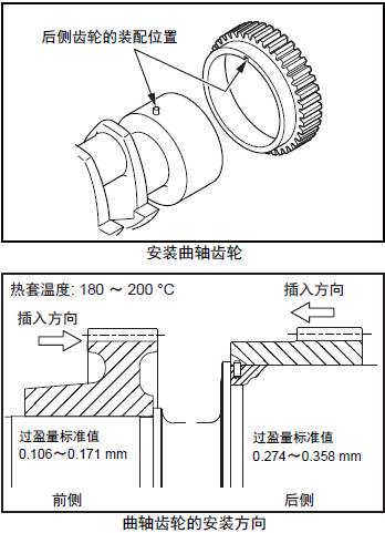 注: 通過(guò)加熱三菱R16柴油發(fā)動(dòng)機(jī)曲軸齒輪拆出時(shí),加熱溫度應(yīng)在180ºC以下。