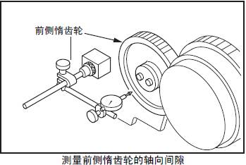 測(cè)量三菱R16柴油發(fā)動(dòng)機(jī)風(fēng)扇驅(qū)動(dòng)器三菱R16柴油發(fā)動(dòng)機(jī)惰齒輪的軸向間隙。超過極限值時(shí),確定故障部件后更換。