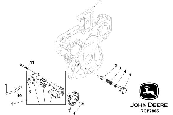 John Deere約翰迪爾強(qiáng)鹿6068 6.8L柴油發(fā)動(dòng)機(jī)機(jī)油泵和機(jī)油壓力調(diào)節(jié)閥零件圖冊