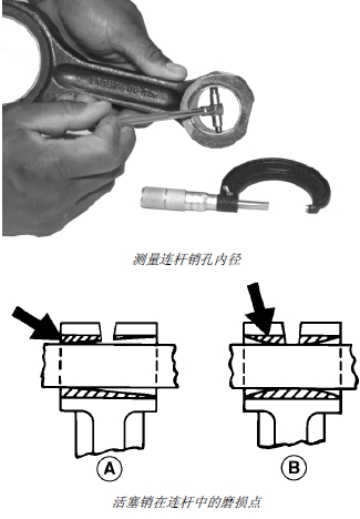5. 按照本章后面說明的方法清潔、檢查和測量連桿銷孔內(nèi)徑。