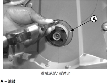 重要提示: 為保證安裝正確,曲軸和耐磨套外徑必須用 Brake Kleen、Ignition Cleaner 或等效產(chǎn)品進行清洗,風干后再安裝油封。
