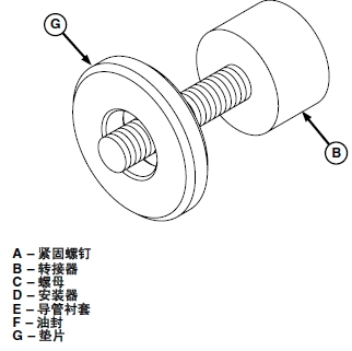 3. 在緊固螺釘上安裝 JDG954-7 轉(zhuǎn)接器 (B) 并用螺母(C) 固定。