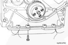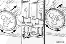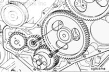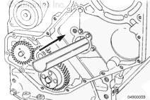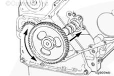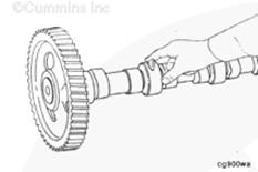 在凸輪軸齒輪與曲軸齒輪嚙合之前,檢查凸輪軸是否容易旋轉(zhuǎn)。如果安裝正確,凸輪軸應可以旋轉(zhuǎn)自如。