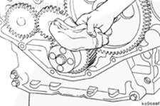 注: 如果安裝新的機油泵,確保齒輪的側隙正確。