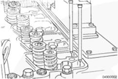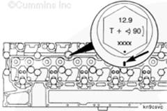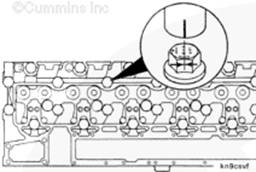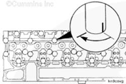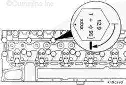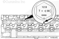 使用清潔的康明斯ISB5.9 G CM2180發(fā)動機機油潤滑 12-mm 軸座/缸蓋螺釘的螺紋和螺釘頭以下的部分。