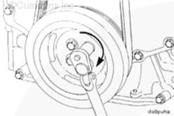 安裝曲軸皮帶輪。此時不要將螺釘擰緊到規(guī)定的扭矩值。