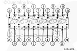 由于缸蓋松弛,重新擰緊短螺釘(1 號、2 號、3 號、6 號、7 號、8 號、9 號、10 號、11 號、14 號、15 號、16 號、17 號、18 號、19 號、22 號、23 號、24 號、25 號和 26 號),以符合正確的缸蓋緊固要求。