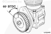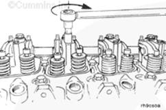 使用 1/2 英寸驅動頭和康明斯ISB5.9 G CM2180發(fā)動機盤車工具(零件號 3824591)旋轉康明斯ISB5.9 G CM2180發(fā)動機(順時針,面對減振器),直到 6 號氣缸(針對 6 缸康明斯ISB5.9 G CM2180發(fā)動機)的進氣搖臂開始打開進氣門。