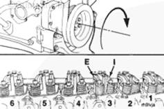 轉動螺釘直到在缸蓋上做的標記進入螺釘頭的“窗口”中。