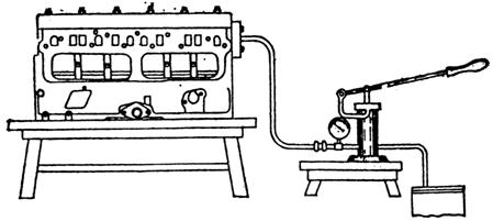 檢驗氣缸體和的裂紋,通常采用水壓試驗方法進(jìn)行。檢驗時,用專用的蓋板將水道口密封。把水壓機水管接在氣缸體的進(jìn)水口,然后將水壓入水套,要求在294~392kPa的壓力下保持5min,不應(yīng)有滲透現(xiàn)象。如果沒有水壓試驗設(shè)備,也可以將汽油或煤油注入氣缸體和氣缸蓋水套內(nèi),經(jīng)半小時以后,檢視有無滲透現(xiàn)象。
