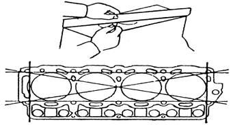 用直尺和厚薄規(guī)檢查氣缸體上平面的不平度,如果平面誤差超過規(guī)定時,應(yīng)進(jìn)行修磨。氣缸體上平面翹曲應(yīng)小于0.05mm,使用限度為0.20mm。