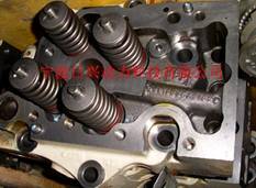 1)檢查氣缸蓋有無裂紋,用染色滲透法,檢查燃燒室、進氣口、排氣口、氣缸蓋表面和氣缸蓋頂部有無裂紋,如有裂紋,應更換氣缸蓋。