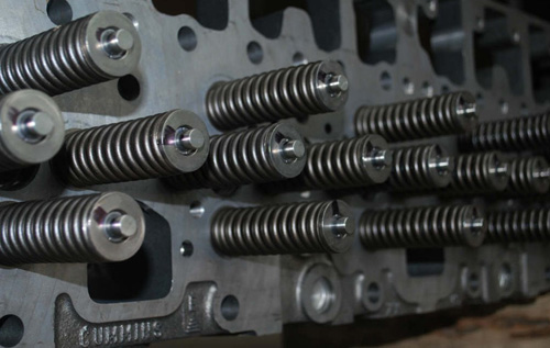一、康明斯柴油機氣缸蓋的檢修:康明斯B系列專用柴油機采用整體式氣缸蓋,用優(yōu)質灰鑄鐵鑄造 而成。氣缸蓋上布置有進、排氣道及冷卻水道,安裝的零件有進、排氣門、搖臂總成、噴油器、節(jié)溫器、排氣管、氣門室罩等。