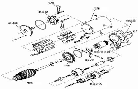 康明斯系列起動機是帶有電磁開關(guān)和單向離合器的直流電機,是短時工作制,由蓄電池供給電源,用于起動柴油發(fā)動機。起動機結(jié)構(gòu)是雙線制。