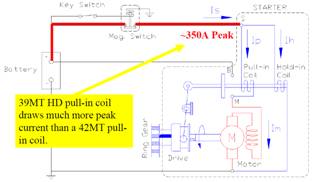 3、起動機控制線路,蓄電池和電磁開關(guān)大接線螺釘間的連接導線截面為50mm2,連接電磁開關(guān)和起動繼電器的連接導線為不小于2.5 mm2,導線的長度應(yīng)盡可能縮短,視導線的長短,截面可適當?shù)脑黾踊驕p少。蓄電池正極與電磁開關(guān)長螺栓連接,必須擰緊。使用的起動繼電器電流容量必須大于80A。