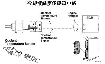 故障原因:在發(fā)動機(jī)線束的 22 號冷卻液溫度信號觸針上檢測到的電壓低于 0.21 VDC。