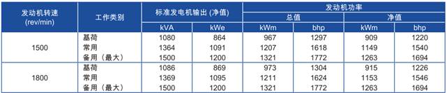 功率:于1500rev/min時(shí),1263kWm