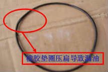 造成此故障的現(xiàn)象:發(fā)動(dòng)機(jī)起動(dòng)后,前端出現(xiàn)噠、噠、噠、、、、異響,發(fā)動(dòng)機(jī)工作正常,并且在轉(zhuǎn)向泵與缸體結(jié)合處出現(xiàn)漏油的現(xiàn)象。 造成此故障的原因分析:可能是轉(zhuǎn)向泵安裝不良,導(dǎo)致轉(zhuǎn)向泵齒輪與其它齒輪在嚙合時(shí)出現(xiàn)異常響聲。另外,可能是水泵、氣泵齒輪安裝不良所致。該問題的主要原因在連接轉(zhuǎn)向泵進(jìn)出油管時(shí),由于安裝困難,用戶自行將轉(zhuǎn)向泵拆下,但在安裝時(shí)未能正確裝配,故而出現(xiàn)上述問題,圖片中的墊子被壓潰致使其接觸面漏油。 此故障的維修解決方法:更換轉(zhuǎn)向泵齒輪(或氣泵、水泵齒輪)