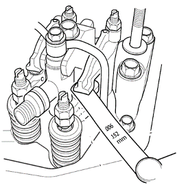不要在松開氣門橋的狀態(tài)下松開或鎖緊氣門調(diào)整螺栓螺母。用扳手固定氣門橋防止氣門桿彎曲。然后松開氣門橋調(diào)整螺栓的螺母。